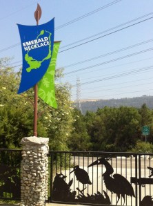 Locals told me about Thienes (pronounced “THE-na” by the peeps), that guys were hooking up there. So, anxious to do the same, I ventured over today, and got my hopes way up, because it’s such a beautiful spot right off the Emerald Necklace bike path that connects the Rio Hondo and San Gabriel cycling lanes within the San Gabriel Valley. I mean, this could be urban fishing at its finest: safe place to park your cark; painted totems to greet you; an ornate gate; a spot that looks a bit like a bus shelter for respite from the sun; a smoothly paved bike lane; and then the pristine river.