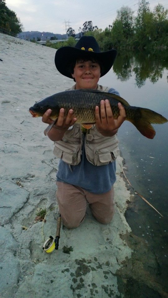 “Hey!” my Tenkara reverie was interrupted from the other bank as a man with his dark hair pulled back stuck his head out of the bushes, smile on his face, big, bruising carp occupying his hands.