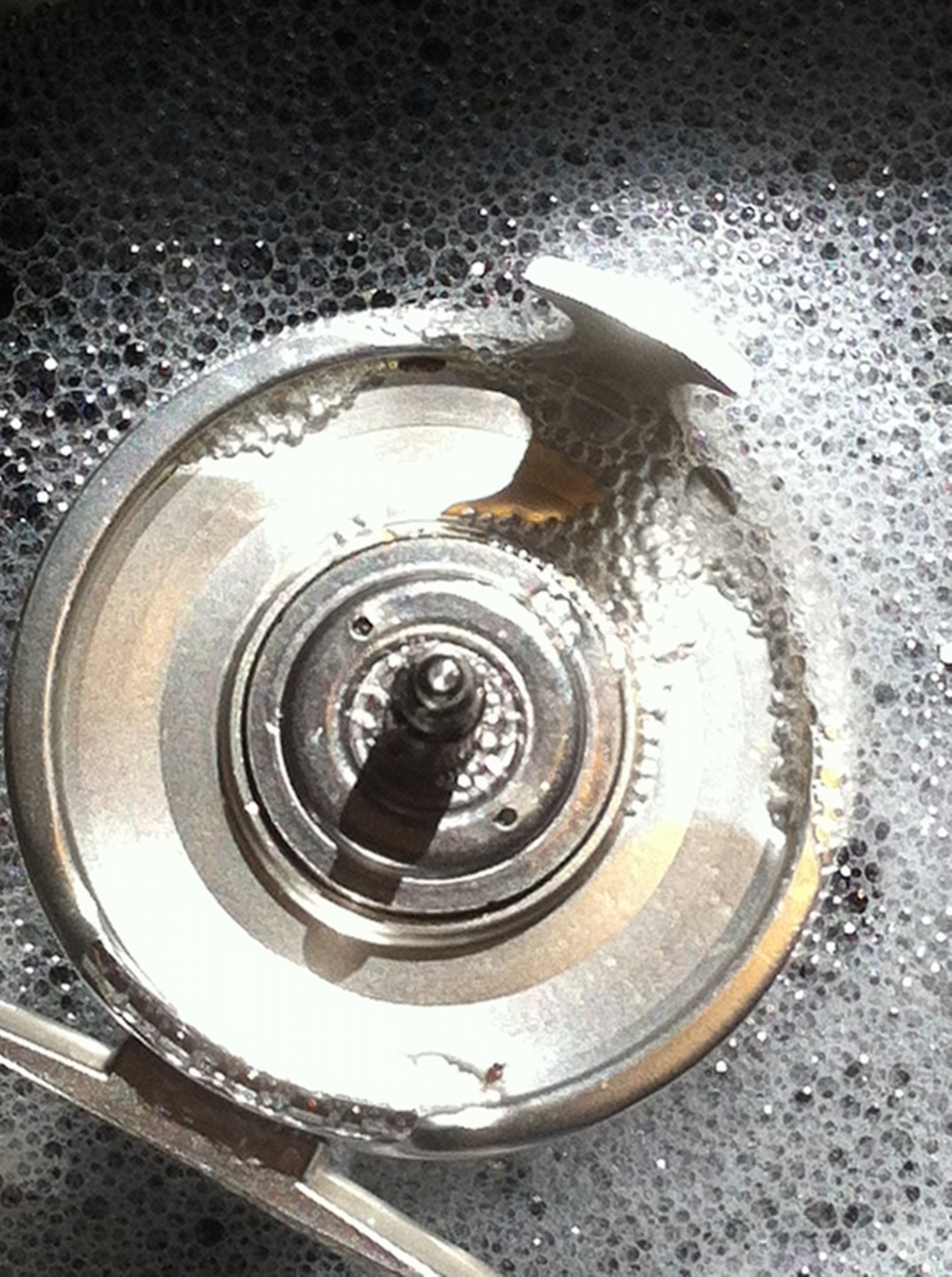 If you’ve fishing the L.A. River, at least once a season, think about cleaning your reel. (Jim Burns)Sand and gunk make their way into your reel. (Jim Burns)Take the plunge, and soak your reel in mild dish detergent. (Jim Burns)Buy some light reel oil, or, better yet, raid the wife’s Singer for sewing machine oil. (Jim Burns)Yuck! It’s a dirty world out there, so as you oil, also use your cotton tip to clean those hard-to-get-at places. (Jim Burns)Man, that’s shiny clean! Time to put it back together. (Jim Burns)