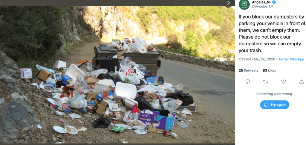 I was just there today. It looks as if there was an air drop of trash all along the west fork of the San Gabriel River. I’d love to say that it’s just an issue of blocked and/or overflowing dumpsters, but it’s clear there wasn’t even an attempt to get the trash to a receptacle in most cases. I could’ve filled a couple dumpsters just within the first mile of the footbridge – and that doesn’t include what was strewn all around the dumpsters. Between the litter and the tagging (in broad daylight!), I wish they’d stand watch and ticket the living piss out of these jerks. We could wipe out the state deficit with one June weekend.
