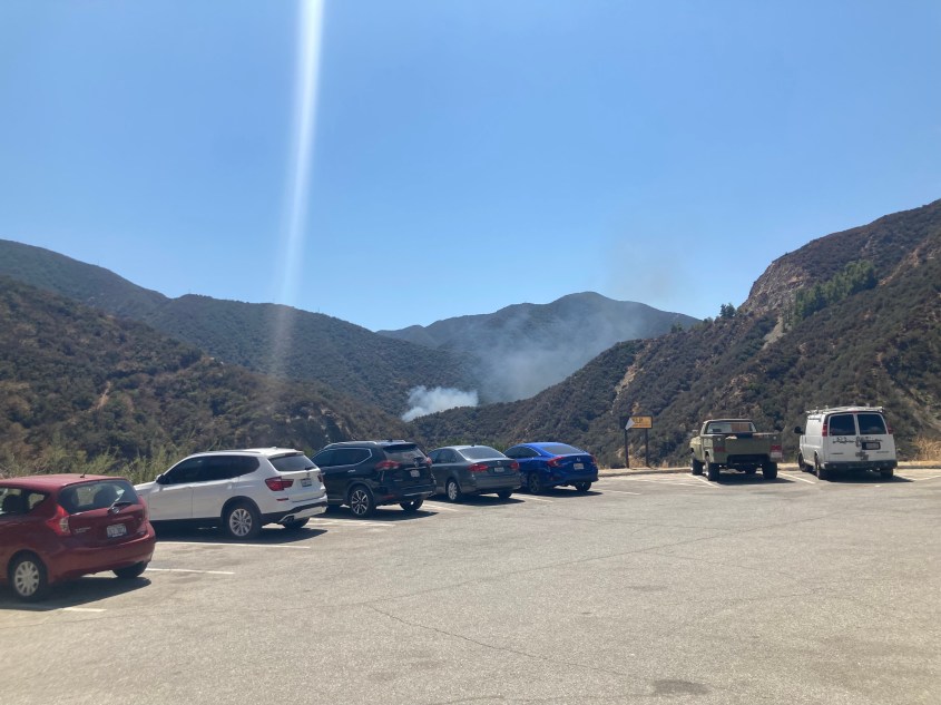As regular readers of this blog know, I had a scare several weeks ago when I hiked back down from a local stream to the parking lot here in Southern California — plumes of smoke rose about a quarter mile down the road. A narrow bridge connects this parking lot to the also narrow main road.