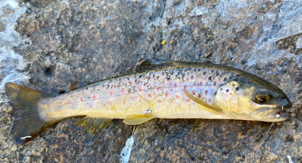 In a watery burst, what draws so many of us to fishing happened to me: a flash of majesty and a solid hungry grab. A 12-inch or so football-shaped trout gleamed silver in that brutally reflective water, hooked and reluctantly riding the current toward me.