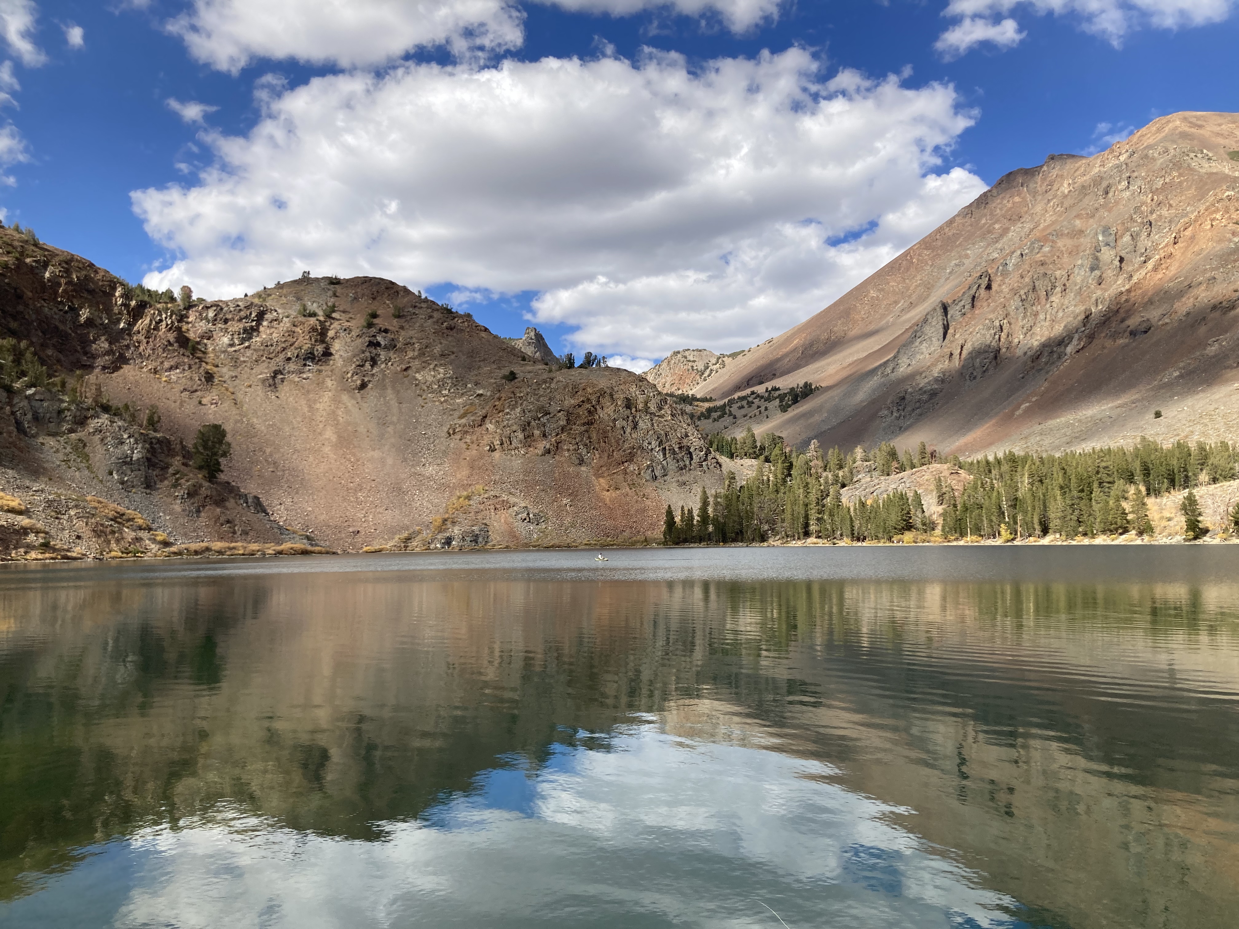 Three days of fishing had yielded only meager results: Day One, skunk; Day Two, two brownies so small they both went through the holes in my net; now the last day was upon us. Late morning on one of the Virginia Lakes yielded spectacular scenes of granite majesty, made us think about geologic time, not human digital.