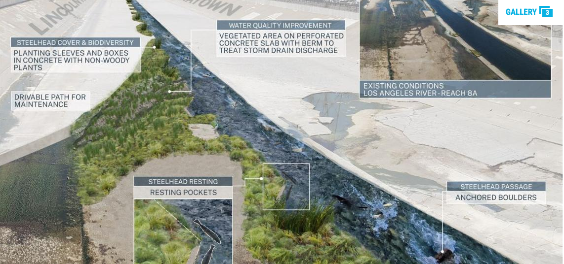 During the past dozen years, the Los Angeles River has moved from object of dumpster humor to a symbol of urban rewilding. According to the city’s LARiverWorks, there are nine projects worth $500 million in the pipeline, from funded design stage to construction.