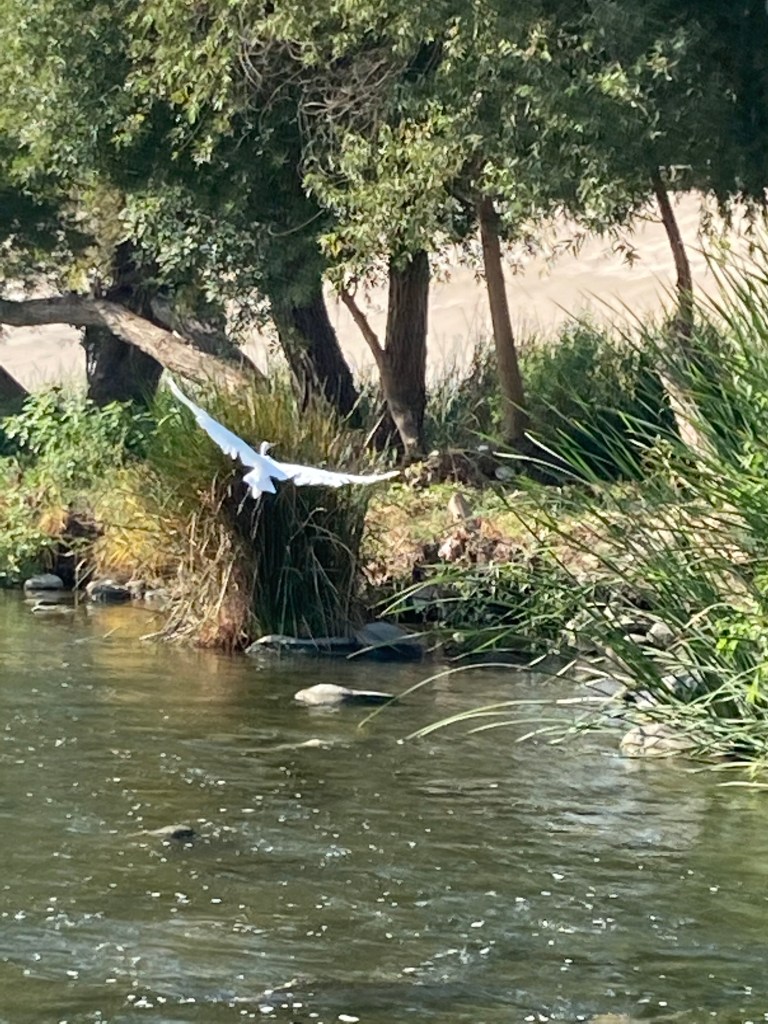 After awhile, it was obvious two grown men were being outfoxed by some quick critters, and as Bob vowed to return the next afternoon with a bigger net, three white Great Egrets moved swiftly, yet awkwardly, to our spot. It was amusing to watch these awesome fishers’ beak-stabs miss again and again. Our underwater friends were fast elusive.
