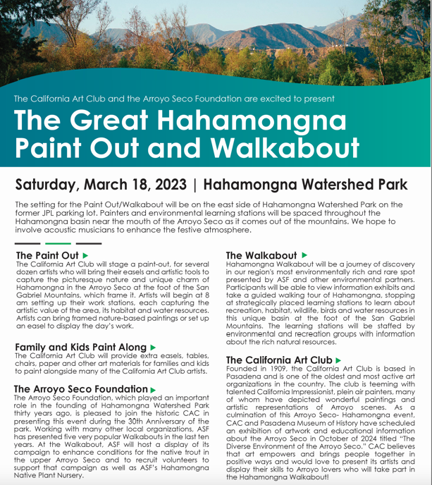 Information about the Arroyo Seco Canyon Project – https://www.arroyoseco.org/ascp