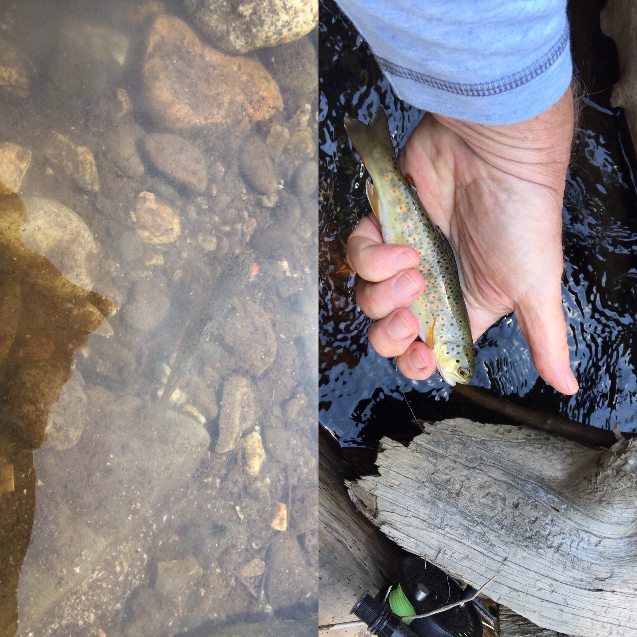 Later, I realized I’d left my water bottle on the bank some 10 feet up, so I put my rod down with the nymphs still in shallow, currentless water. When I came back, there was pleasant surprise No. 2, another small rainbow wondering where he’d gone wrong. So much for the expertise of fly fishing!