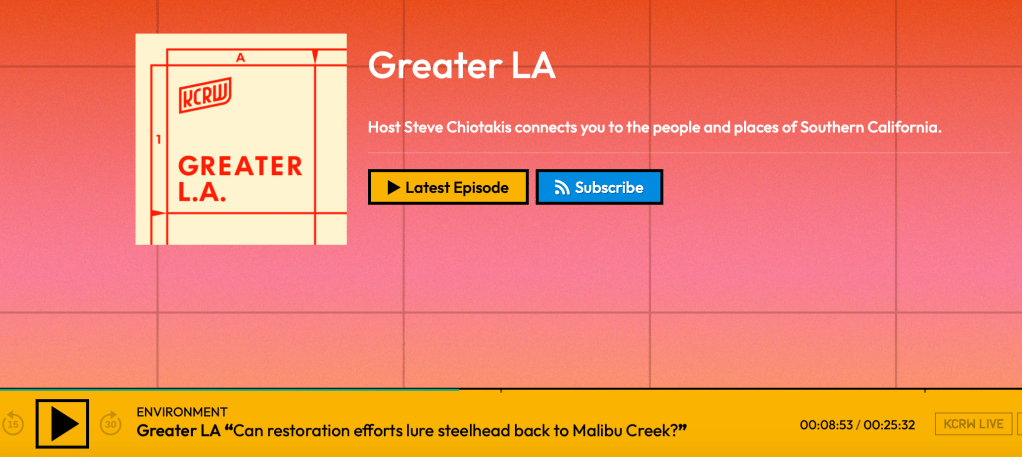 It’s always gratifying to have your writing spawn something bigger, that’s why most writers write. Oh no, actually, it’s the MONEY (OK, that’s a joke … ). So when Debbie Sharpton, whose ongoing environmental efforts in Malibu Creek State Park I wrote about in February, let me know local public radio station KCRW was picking up and expanding on that story, I was thrilled. I’ve included two links below, one for their print version, and another to “Greater LA,” where the story aired.
