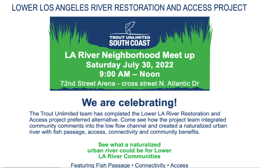 “The LA River restoration effort is not about fishing, and it’s not really about trout,” said Bob Blankenship, of TU’s South Coast Chapter, who along with another TU board member, Karen Barnett, spearheaded the effort. “It’s about helping local people reimagine their local river, with global exposure that will jump start other restoration efforts.”