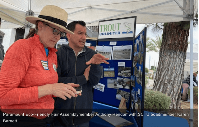 Chapter board members Karen Barnett and Bob Blankenship partnered with the City of Paramount to design a fish passage in the Lower Los Angeles River. The river goes through several different municipalities, like Compton, Long Beach, Linwood and the City of Paramount has created an exemplary storm drain system from the neighborhood storm water run off through a bioswale in Dills Park. Barnett and Blankenship thought this would be a great place to focus and create an in-channel native plant area with rocks and sandy areas for the fish to relax. The focus area is right below another “River City”… South Gate. This is where Frank Gehry plans to make some sort of riverside park with a ferris wheel. We imagine this to be steel and concrete as a nod to his past creations and just south of it at Dills Park is just the opposite. Taking the concrete sections back to nature with public access to enjoy these areas in hope that one day all the River Cities can do the same, so the elusive Steelhead Trout will return to this urban river as it once did, prior to the 1940s. Check out Bob and Karen’s great work.